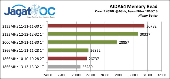 Di kecepatan DDR3-1866MHz, RAM ini mampu berjalan di CAS Latency 11 dengan command rate 1, dan CL 10 dengan Command Rate 2T. Ketika kami mencoba menyentuh CL9 RAM tersebut tidak lolos POST dan kembali ke default. Seiring naiknya frekuensi ram ini sudah harus dituning lebih lanjut dimulai pada kecepatan 2200MHz dengan settings timing AUTO.