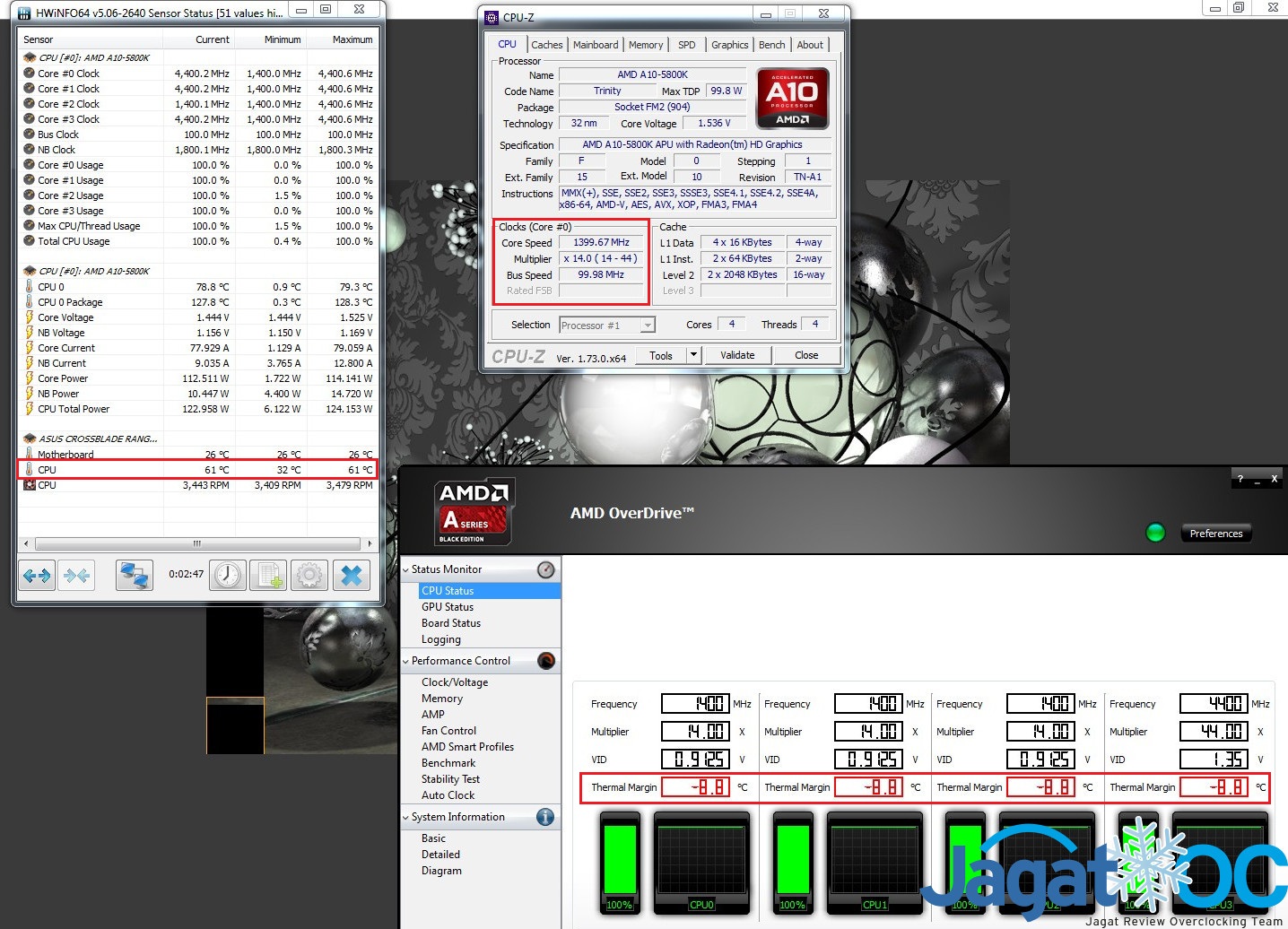 - Eksperimen Suhu 2: A10-7870K, Stock Aluminium HSF, Overclocked to 4400Mhz