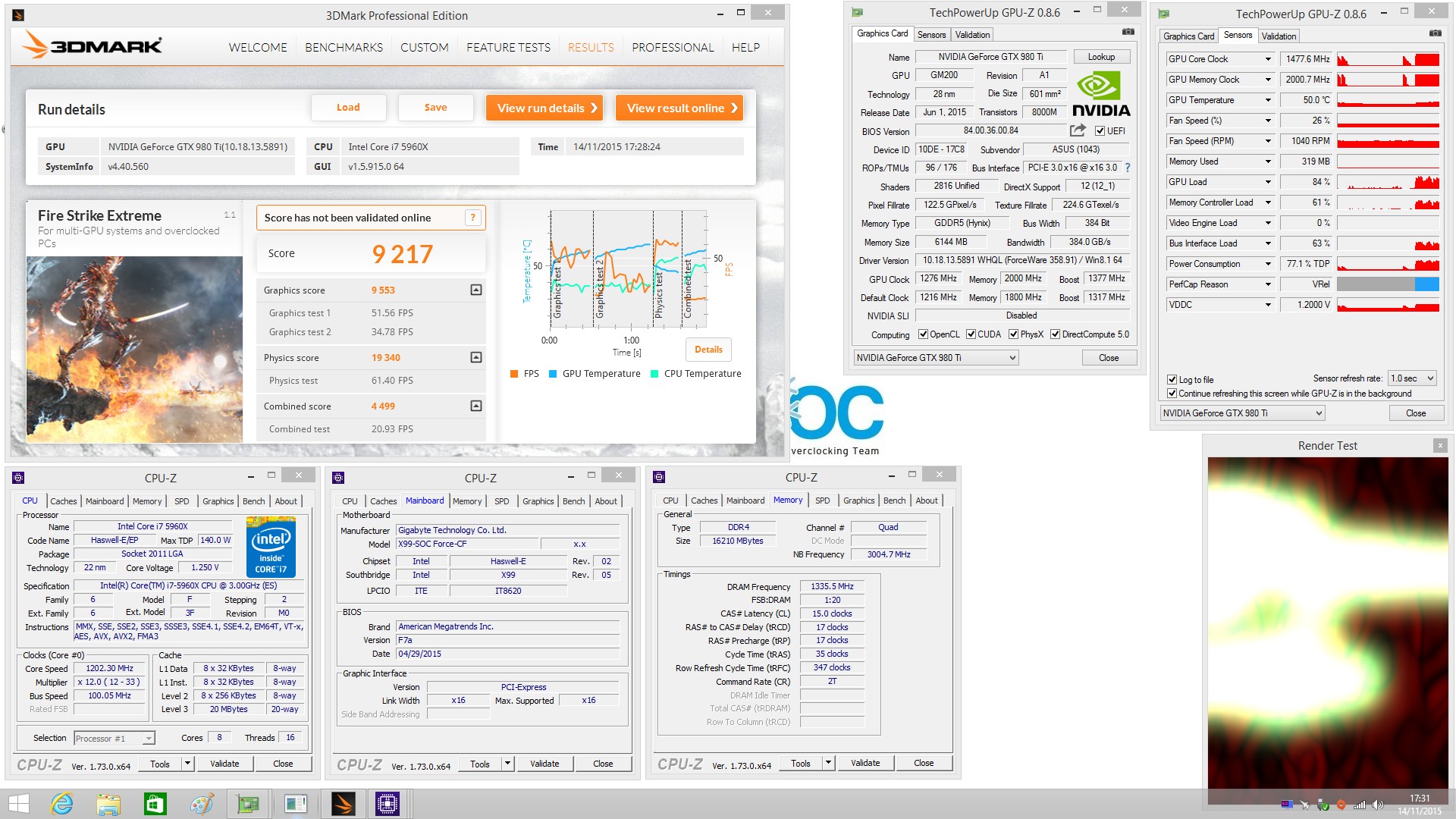 - Motherboard: Gigabyte X99 SOC-Force