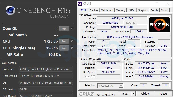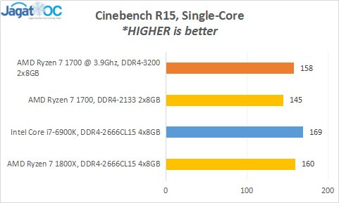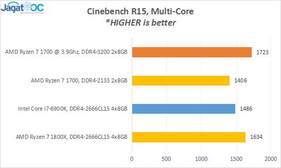 Sistem dengan prosesor Ryzen 7 kelas paling bawah ini meski menggunakan motherboard kelas mid-end dan CPU Stock Cooler dari AMD FX, masih menunjukkan overclockability yang cukup baik dari segi CPU maupun RAM. CPU kami bisa dipaksa ke 3.9Ghz (3.95Ghz crash di 1.35v), pada konfigurasi 8-core 16-thread menunjukkan peningkatan lebih dari 20% dibanding keadaan defaultnya, mengalahkan Core i7-6900K dan Ryzen 7 1800X dalam keadaan default!