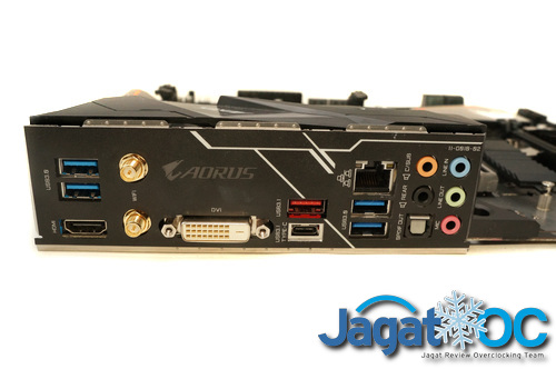 Untuk melihat komponen VRM, Anda perlu melepas backpanel I/O Shroud, lalu melepas heatsink mosfet VRM yang ada. Heatsink mosfet ini sendiri dipasangkan menggunakan sebuah push-pin, dan media transfer panas nya adalah sebuah thermal pad.