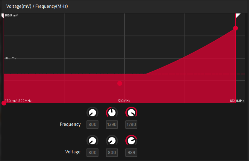 Coba bandingkan nilai di atas dengan contoh Voltage-Frequency curve dari Radeon RX 5700 XT berikut ini :